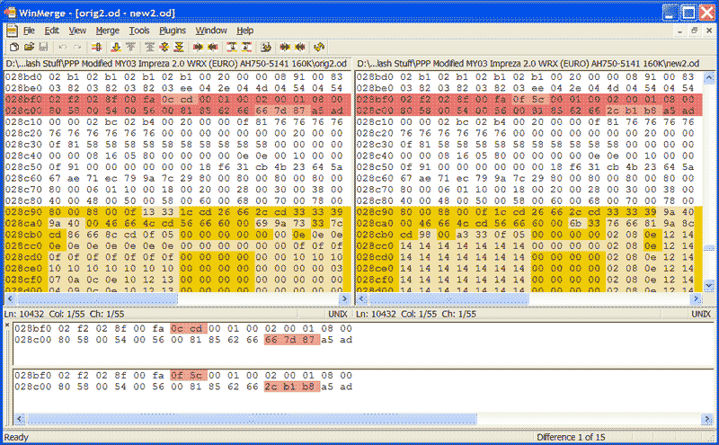 This article describes a procedure for comparing two ECU images. This may be useful to identify differences between a standard ECU and an ECU that that has remapped/tuned. Perhaps you simply want assurance of the changes either you or someone else has made to your ECU image.
