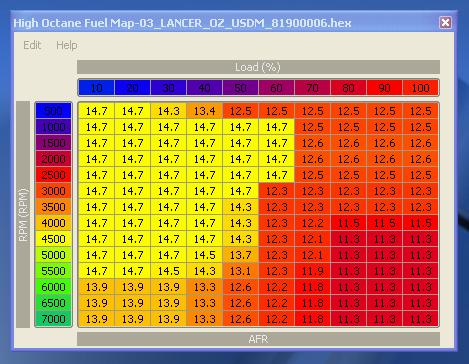 Notice how certain Load (%) and certain RPM = AFR values on this fuel map.