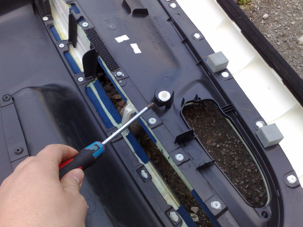 The panel screw in the end of the door card unfortunately doesn’t line up with the blobeye one, so this white piece of plastic needs to be removed as the Hawkeye door card will not fit with this still in place.