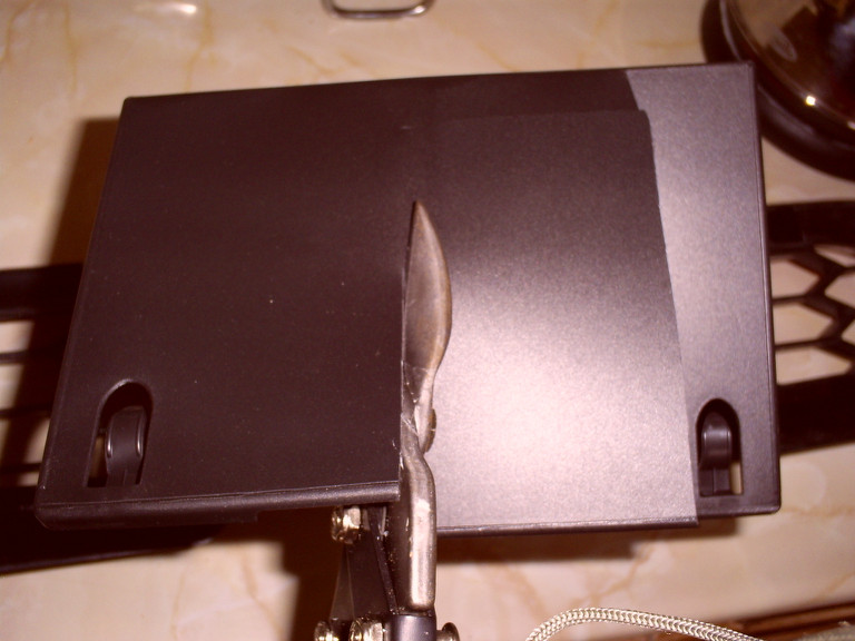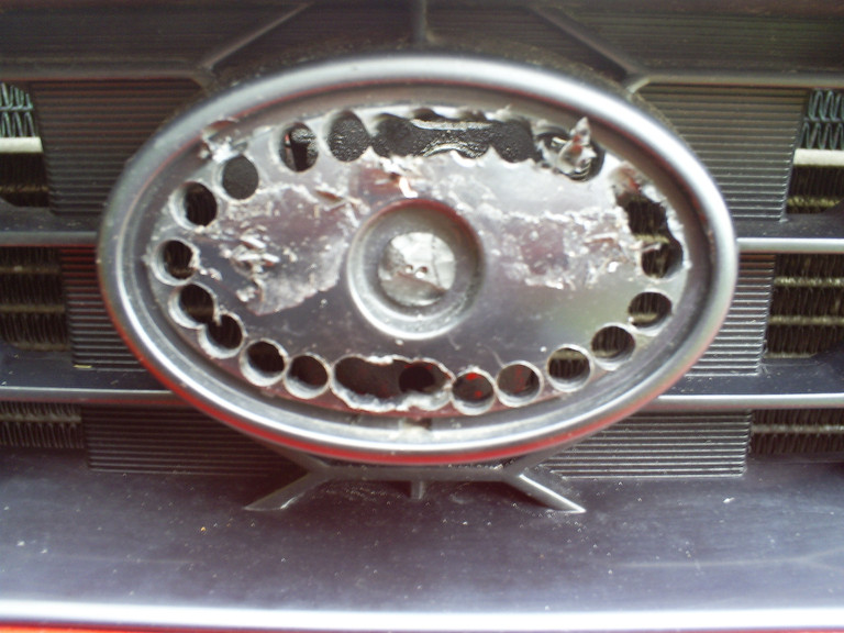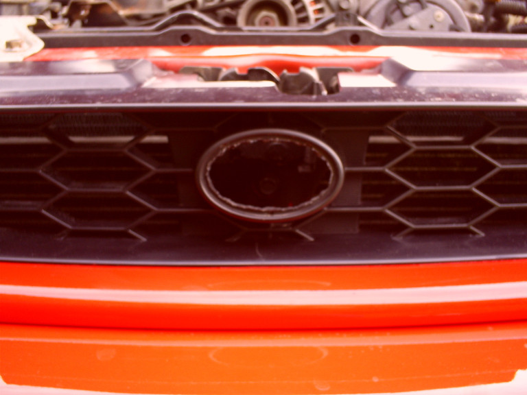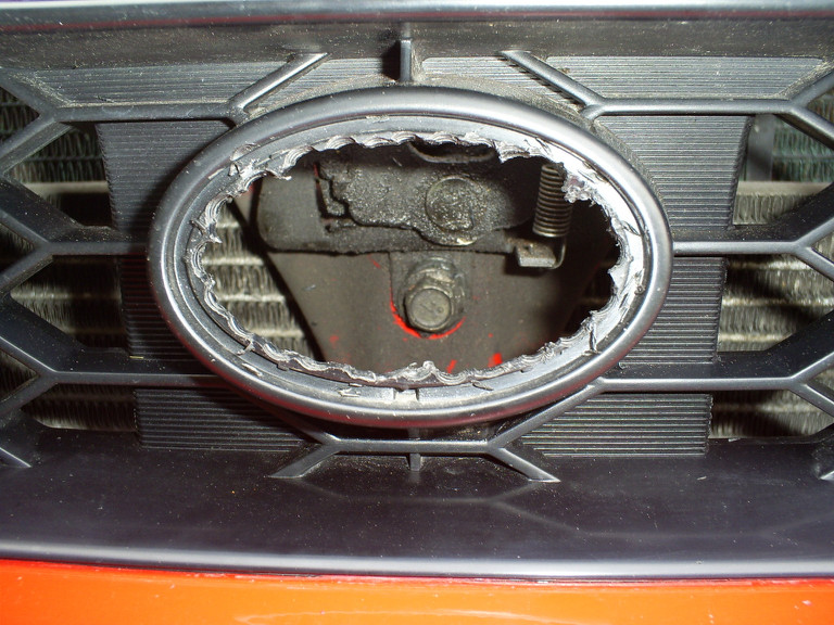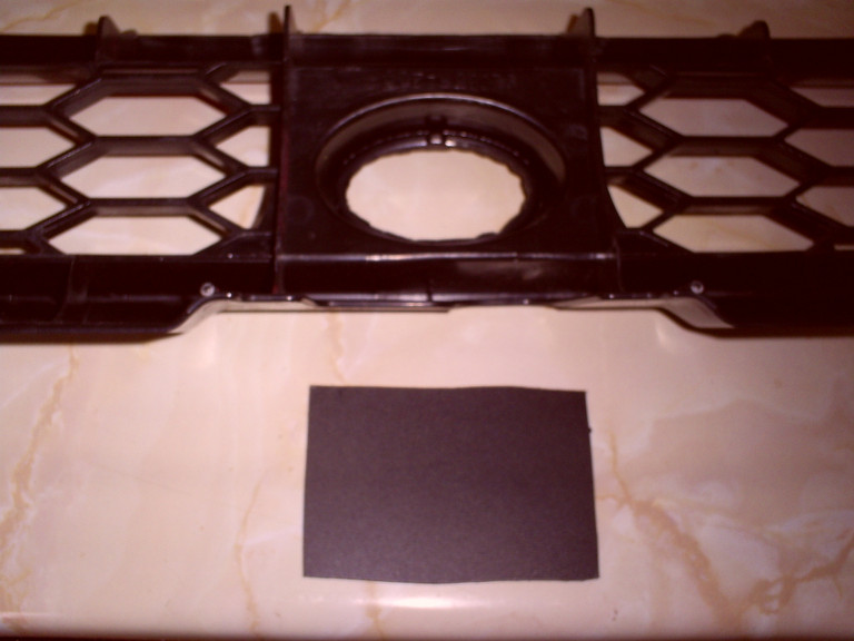 1. Cut front of grille out where the badge would normally sit, leaving the little sunk ridge all the way round: