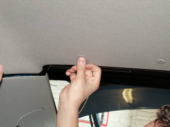 Finally there are the headlining clips above the rear bench. These are 2-stage clips. Carefully using a trim tool, pry out the inner part of the clip. These can be fully removed if desired. Then carefully pull out the black centre part.