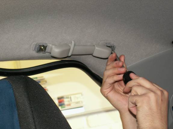 Next are the sun visors. No covers to remove here, just the visible screws at either end.