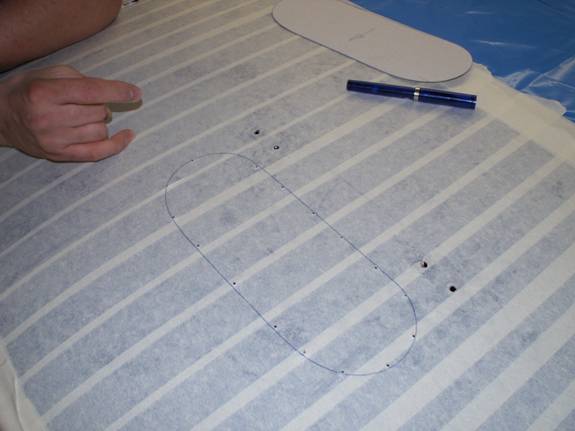 Now overlay your card template onto the roof and align it with the holes previously drilled. You can now trace around the card template onto the masking tape using a ballpoint pen.
