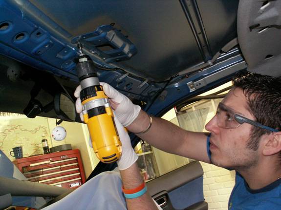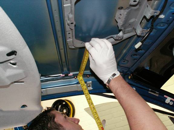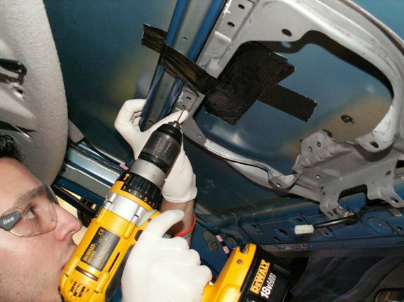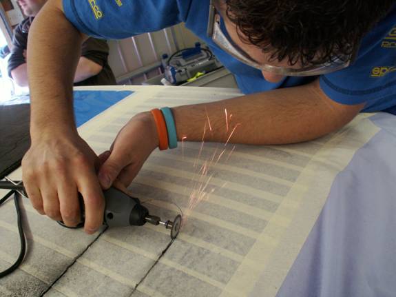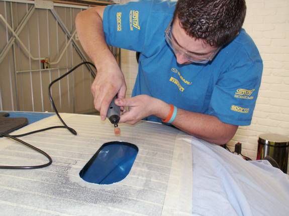 It’s a good idea to lay a big dust sheet inside of the car before drilling as this catches as much debris as possible.