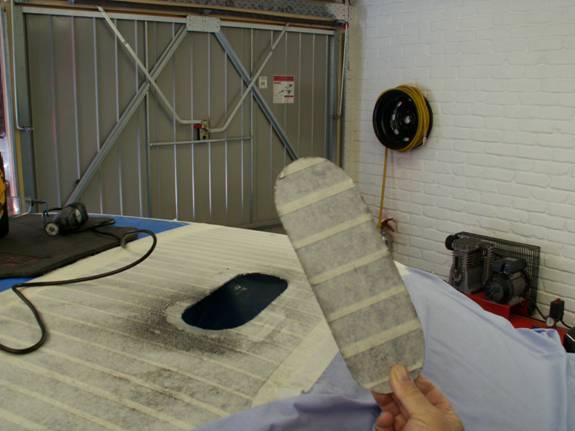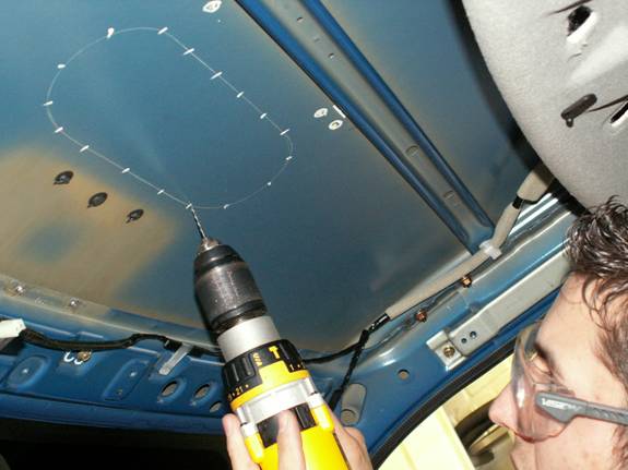 Centre punch the three points to be drilled prior to drilling. Do not go mad with the drill, this is close to the actual roof skin so be careful.