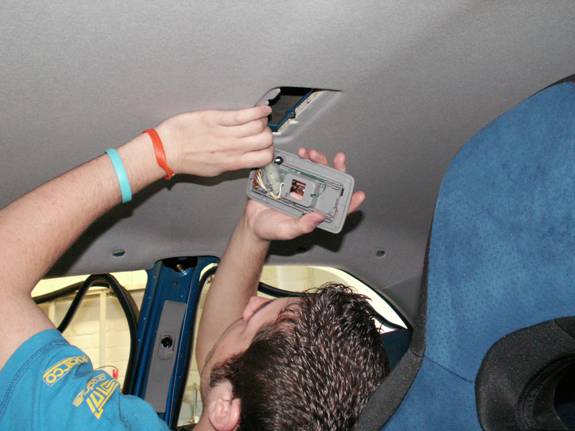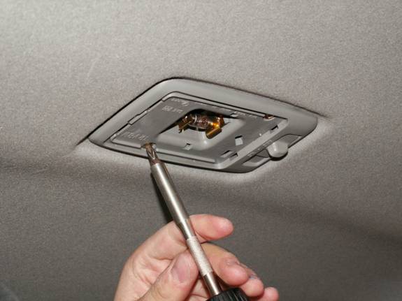 Pop the lens from the centre courtesy light in the same way. Again, remove the 2 screws and unplug.