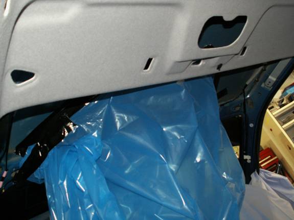 This is where the fun starts. Mask the exterior roof skin with masking tape. This should ensure you do not scratch it when working outside the car. I used a large bag to cover the rear of the roof, just for convenience.