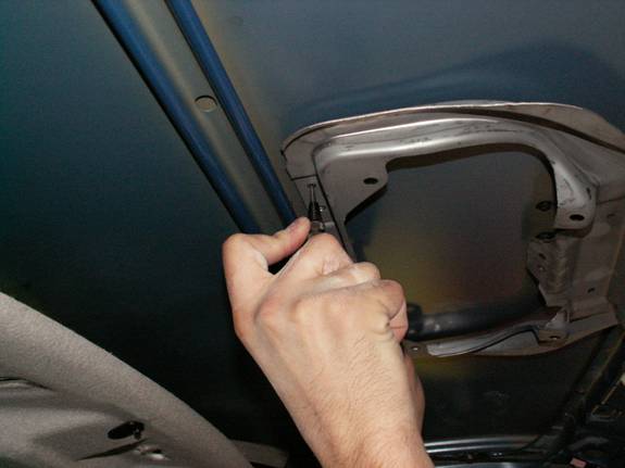 With the lining now cut out and the last of the interior parts fitted. Fasten the inner vent trim using the two screws provided. The trim is held in place by the latch mount.