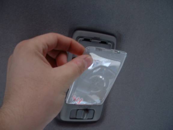 Use a small terminal screwdriver to pop the clear lens out of the front map reading light.
