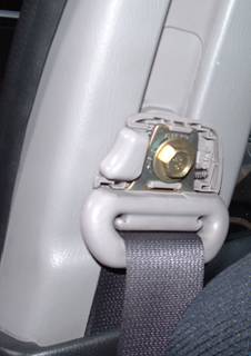 Start by using a small terminal screwdriver to gently pop the covers off of the seatbelt tops, this will expose a 14mm bolt. Remove the bolts and just allow the seatbelts to dangle out of the way.