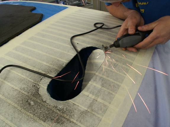 Using a Dremel® or similar with a small cutting disc, cut the hole in the roof. Take your time.
