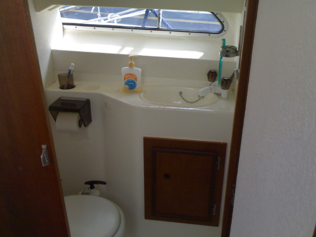 The bathroom - heads, sink with hot and cold water and integral shower. |