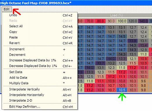 Notice how certain Load (%) and certain RPM = AFR values on this fuel map.