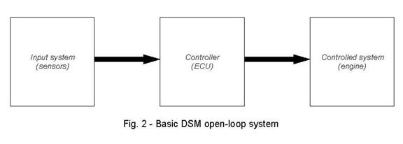 If you like, you can imagine the middle box on the page representing the ECU inside a Mitsubishi, or any other car. The input system can be any or all of the input sensors used by the ECU, including airflow, throttle position, air temperature, barometric pressure, etc. The output signals consist of control outputs to fire the injectors, provide spark to the cylinders, and so on, which (naturally) run to the engine. As you might expect, open-loop control systems are generally not very useful, because the controller does not have any way of knowing how the controlled system is behaving.
