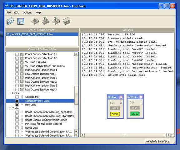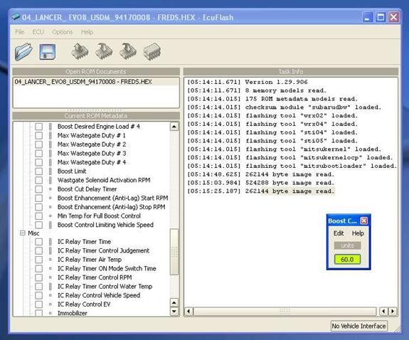 This is when you just sit back and wait patently until the entire ROM is read from the ECU. The program will scroll the memory sectors that have been read (in the Task Info window of ECU Flash browser) and when finished, ECU Flash will bing and you may now turn the ignition to off and remove your interface cables. You may also hear the fuel pump or relays click, this is completely normal.