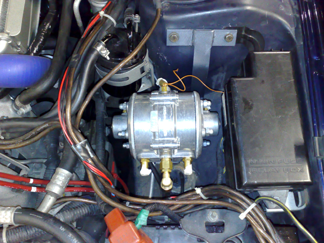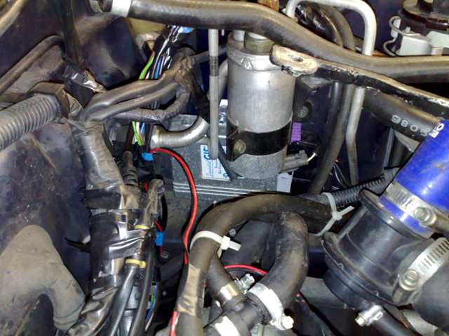 The initial thoughts were that the vaporiser unit would be mounted on the OS inner wing. This proved to be problematic as the LPG gas line would run too close to the exhaust system. The wiring for the ECU would also have to be routed to this location, again proving problematic due to most of the connections needing to go the the petrol ECU and battery, both of which are located on the NS inner wing/bulkhead area.