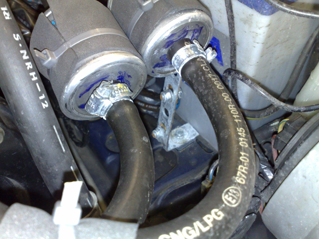 As it happened, the holes left by removing the washer bottle plus the fuel filter mounts could be used for mounting the bracket, thus avoiding drilling news holes.