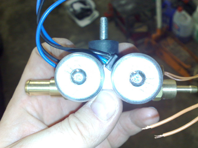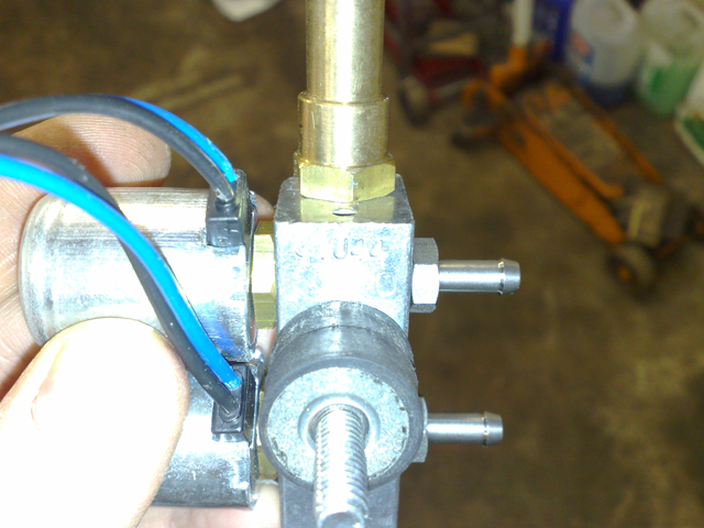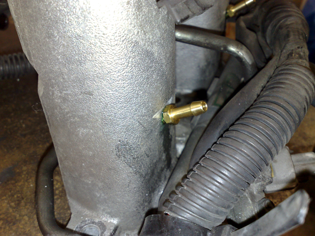 The 2 gas pipes from the vaporiser come from essentially separate units and need balancing to ensure the correct gas pressure to both injector banks. This is even more important due to the fact that the OS injectors have nearly twice the length of gas hose to the NS injectors. The H section balance piece was sourced from my local air tools outlet.