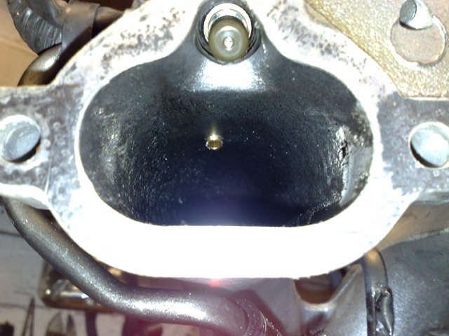The pictures show the drilling and positioning for the nozzles. A small section of the manifold just above each nozzle was machined to allow the nozzle to screw in further. At the time of fitting the nozzles the injector for the flashlube system was installed in the throttle body just behind the butterfly.