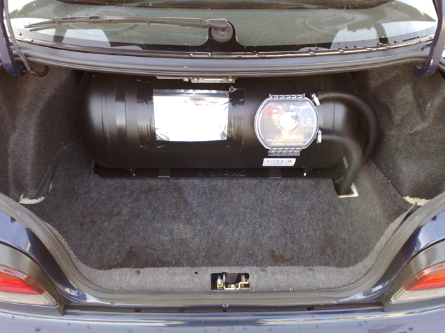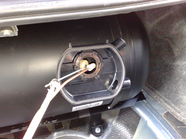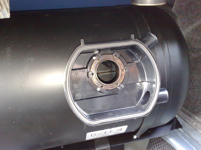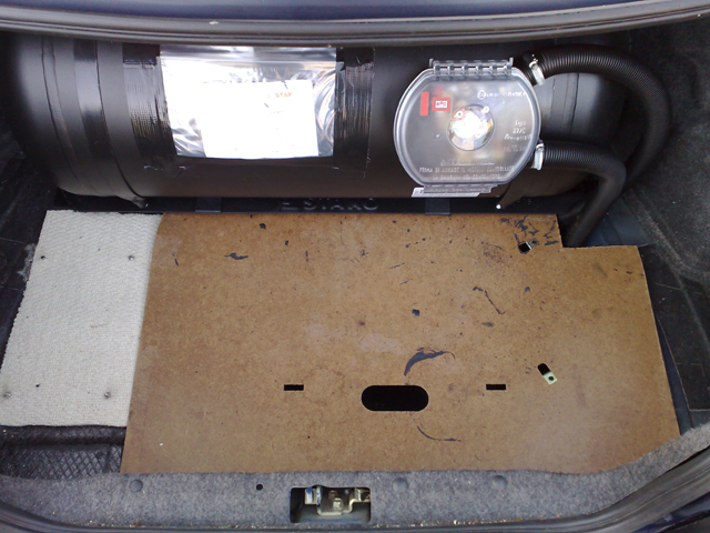 The tank I had bought had already been specified according to the boot space available. I didn't want a tank that fitted in the wheel well as these had limited capacity. You can only fill the tank to 80% of it's capacity due to thermal expansion. So an 80lt cylindrical tank was bought. It measures 360 mm x 892 mm and is fairly heavy, although I never weighed it. I stripped the boot space to see where it would fit.